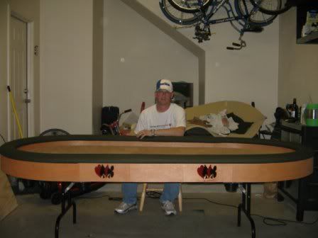 Pictures of 2 tables I have built, these are just the standard poker table. These are not as impressive as some of the tables above but they serve the same purpose and I built them: